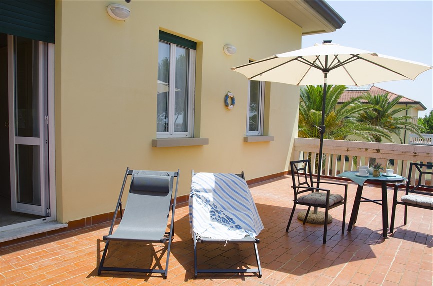 Gli ospiti possono rilassarsi nel bellissimo e comodissimo stabilimento balneare situato proprio davanti alla nostra proprietà.
